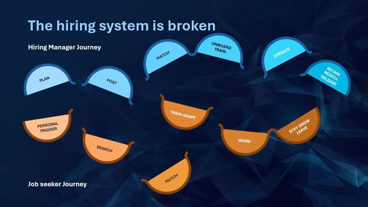 Mapping the end-to-end hiring journey for both employers and workers, identifying friction points and opportunities for intervention.
